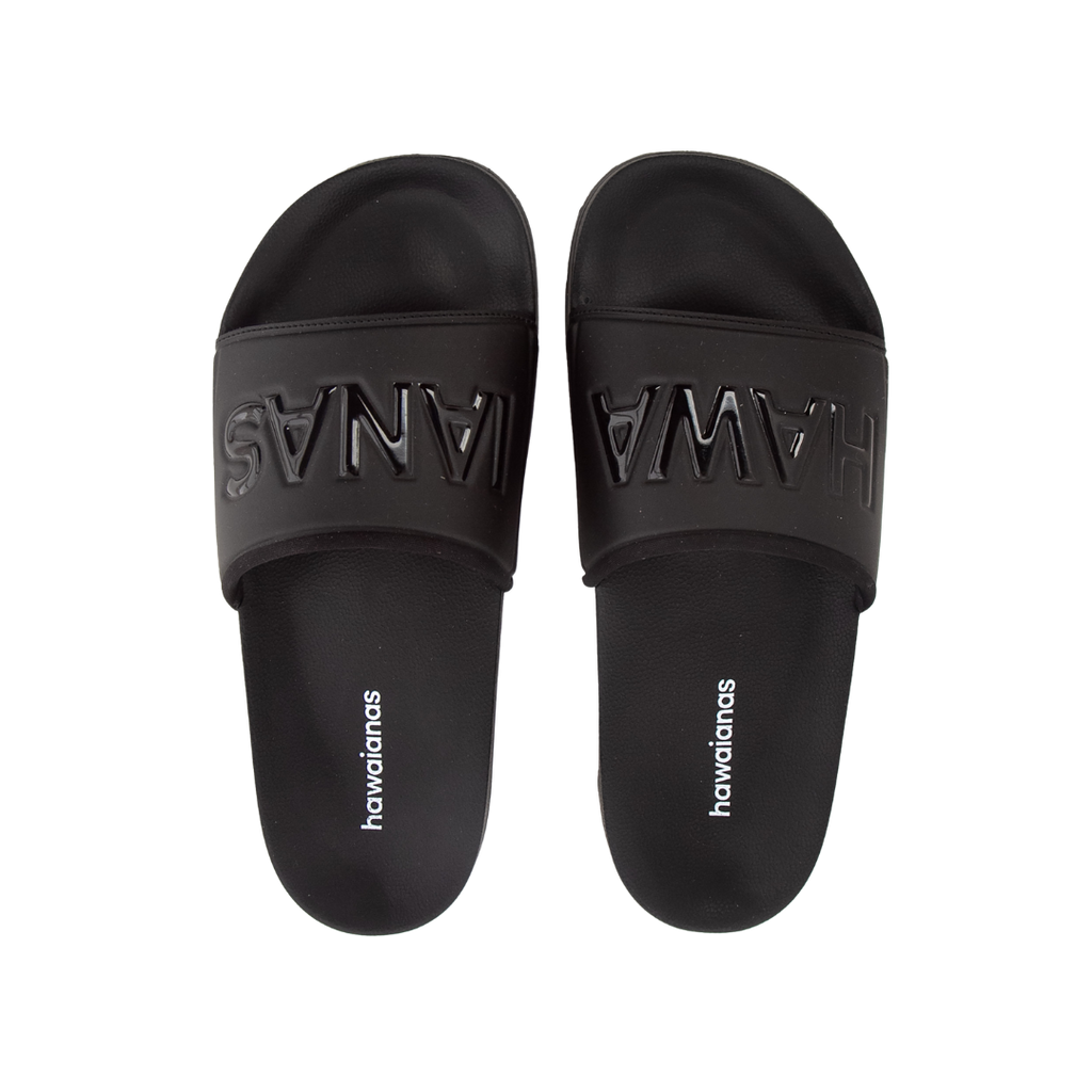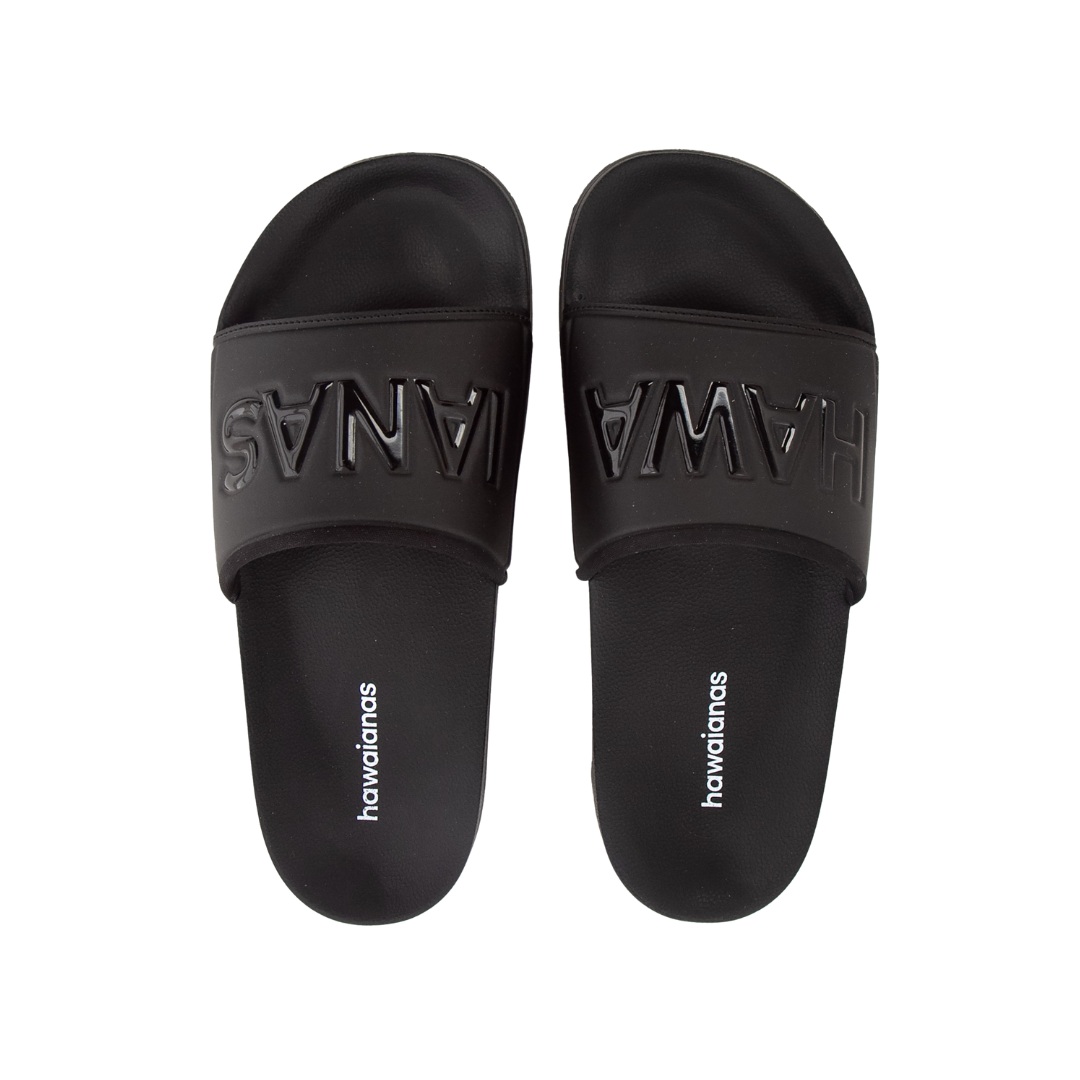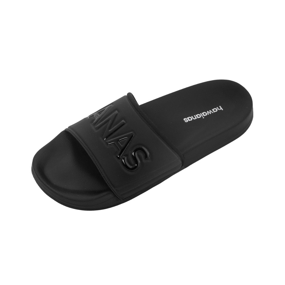 La Chancla Hawaianas Total Black combina elegancia y confort en un diseño completamente negro, moderno y versátil. Su faja ancha con el logo en relieve tono sobre tono aporta estilo urbano y minimalista, ideal para quienes buscan un look sobrio y actual.