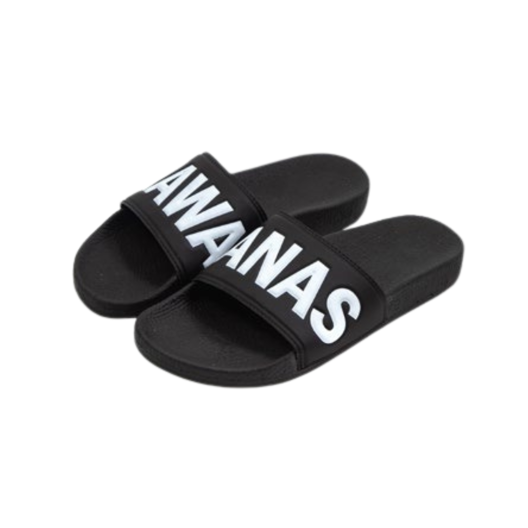 En una chancla se lee HAWA en blanco.