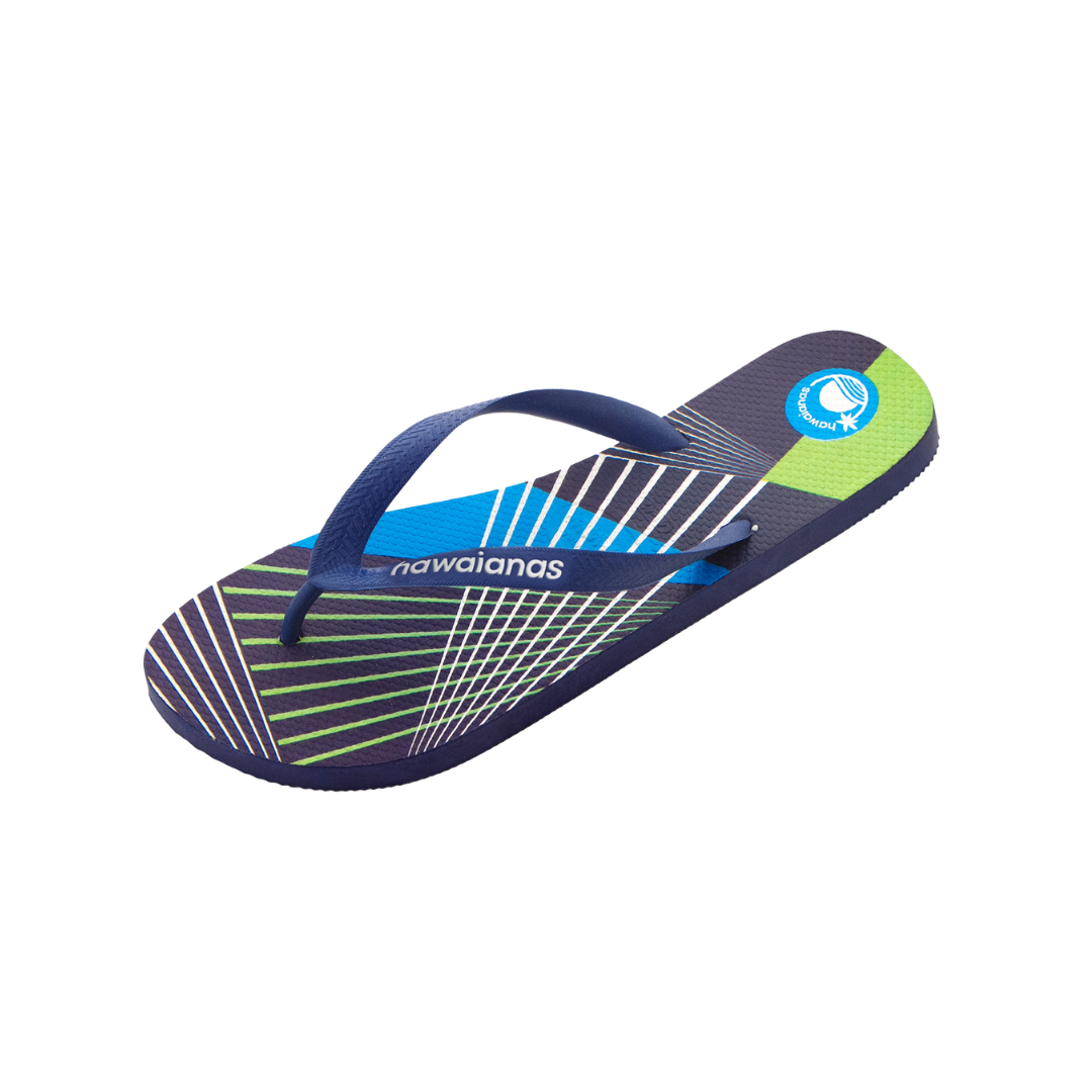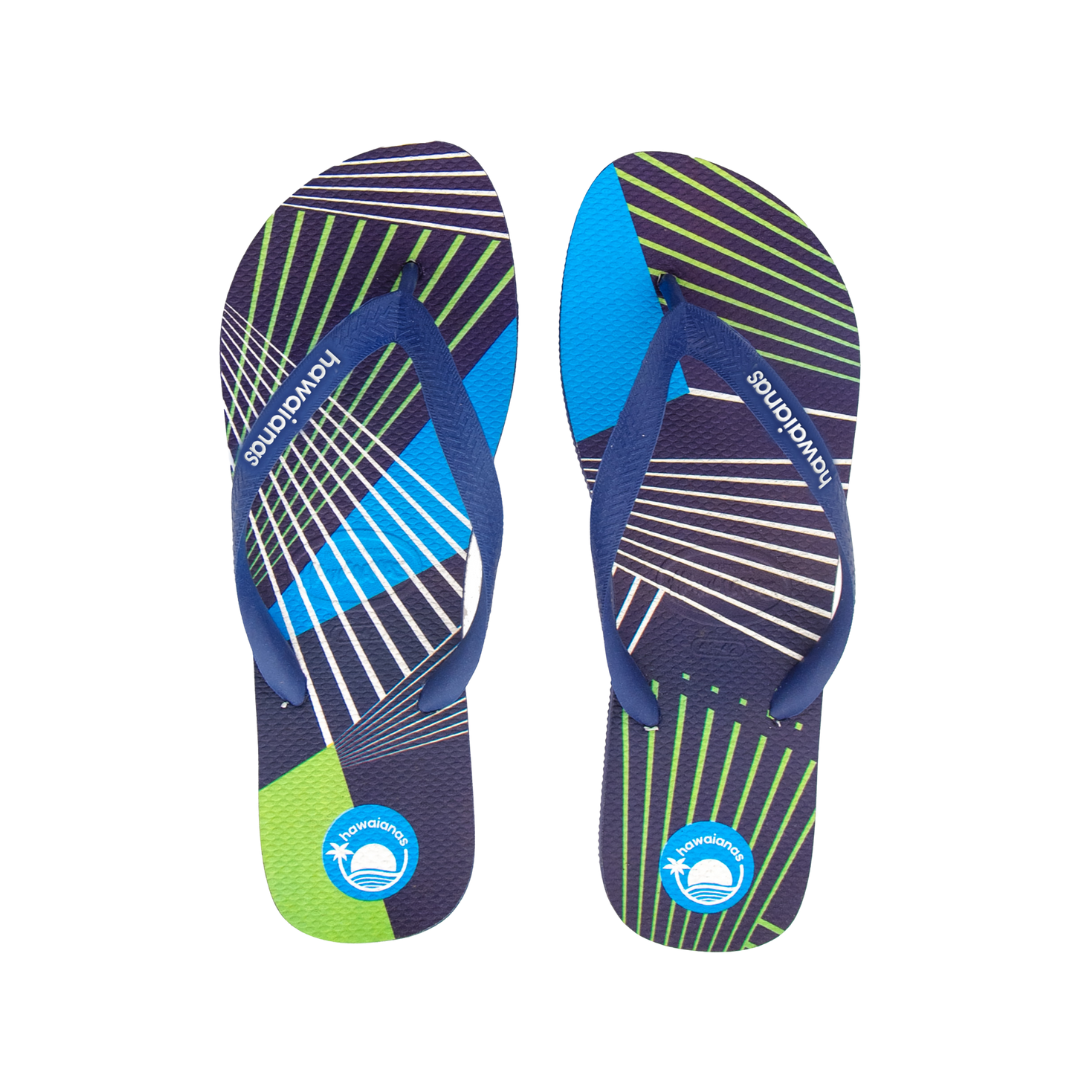Las ojotas Hawaianas Geometric combinan comodidad y estilo en un diseño único. Con su base azul y estampa geométrica en colores vibrantes, son ideales para quienes buscan un look fresco y moderno en la playa, la pileta o la ciudad. Fabricadas con materiales resistentes y de alta calidad, aseguran durabilidad y confort en cada paso.